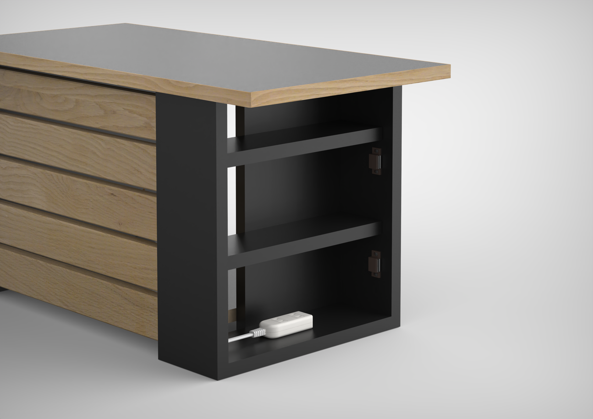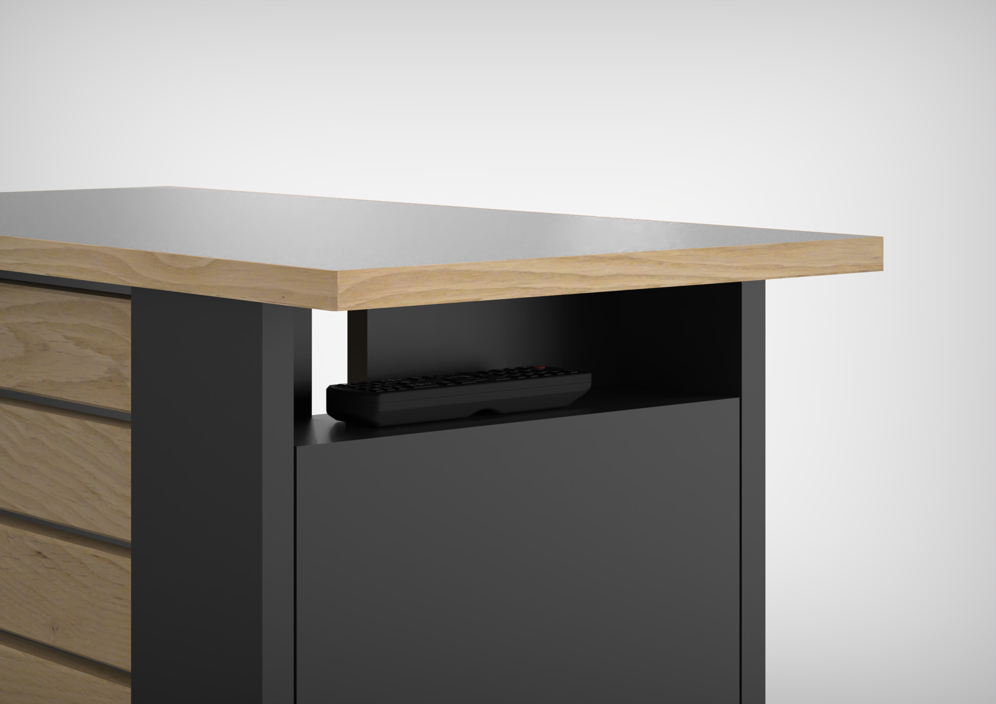 また、タップやアダプタ、リモコン用の収納も備えており、視覚をきれいに整えることができます。