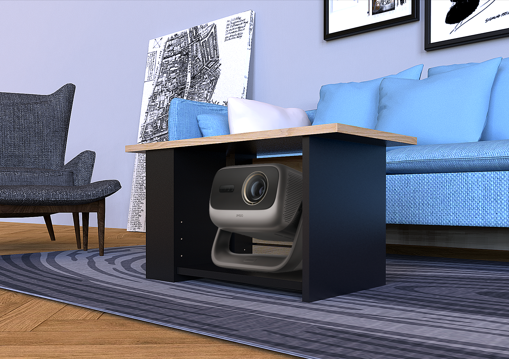 プロジェクターを収納したまま映写可能なセンターテーブル。